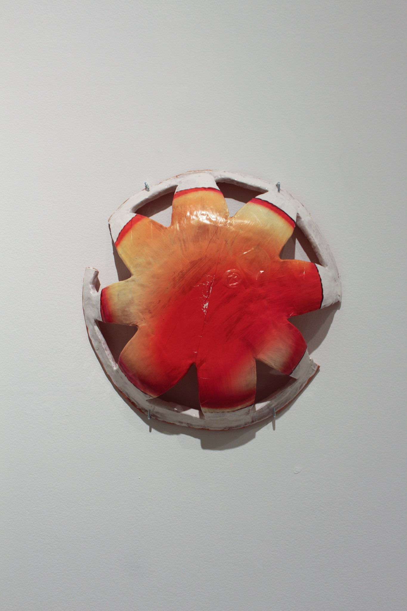 Inkjet prints on canvas, cotton rope, natural dye, earthenware, inkjet decals, carbon steel
